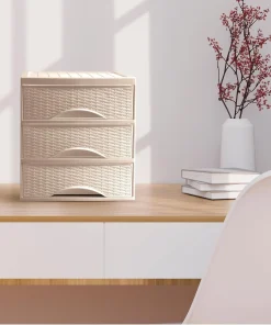 Cajonera de Sobremesa Imitación Rattan A4 con en Plástico Duro. Ideal para Organizar la Oficina
