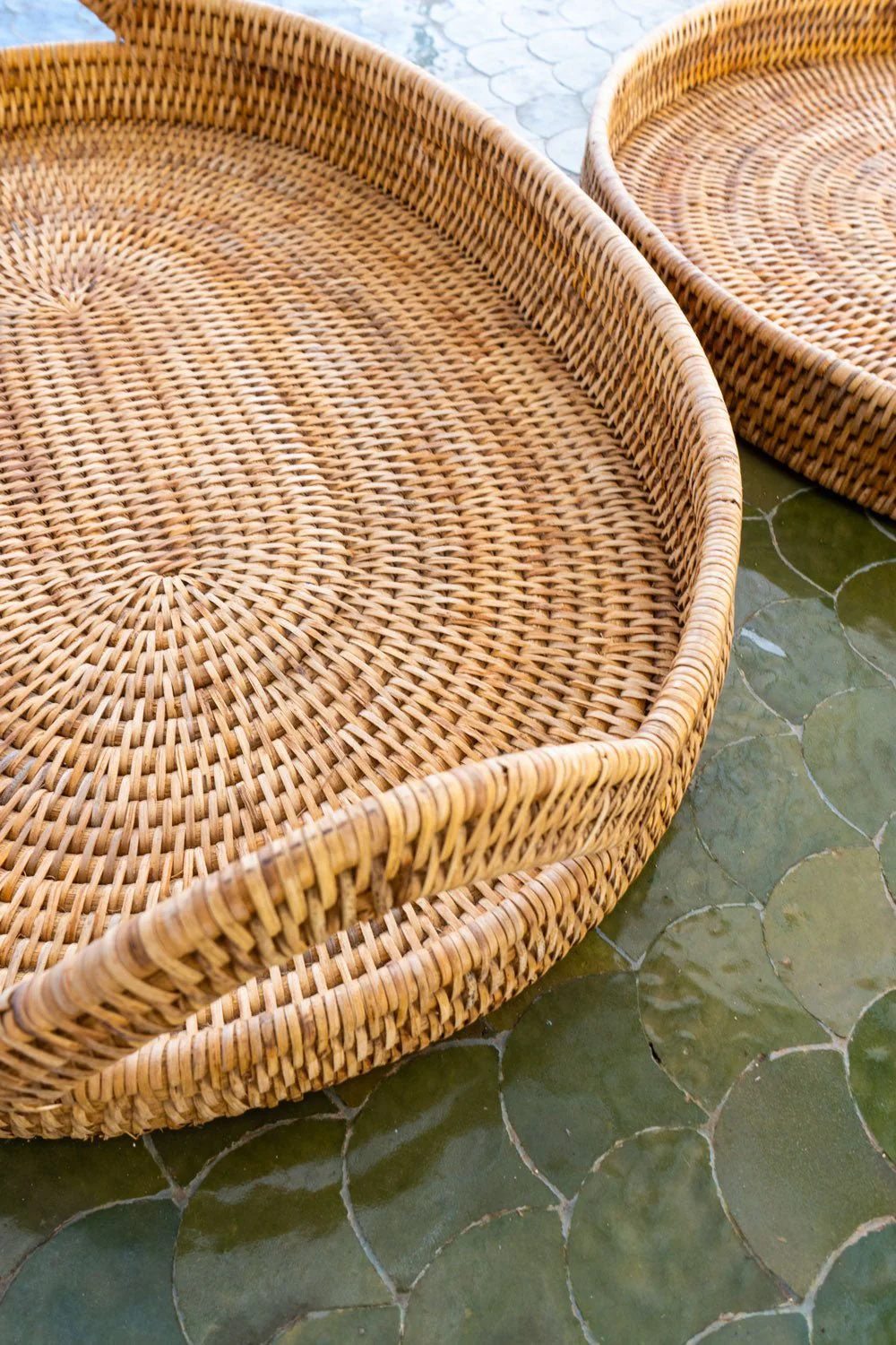 Bandeja ovalada de ratán con asas, ideal para servir con estilo, organizar tu espacio o como elemento decorativo. Esta colección combina la belleza del material natural con la funcionalidad y el diseño contemporáneo.