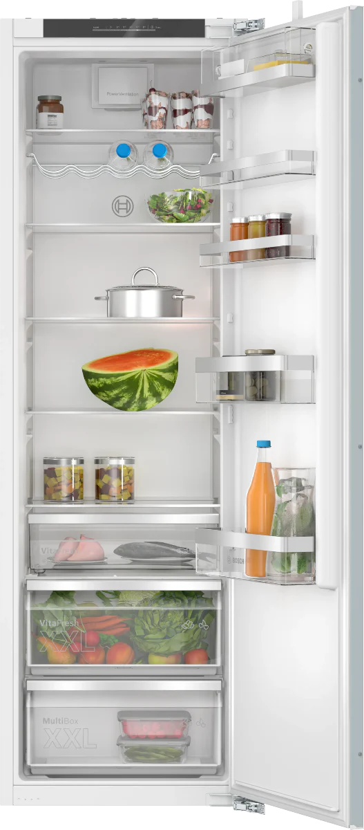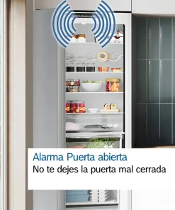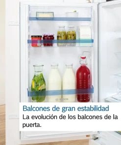 Este Frigorífico de una puerta, integrable, de medidas 177.2 x 55.8 cm y cierre SoftClose con puerta fija, de la Serie 6 de Bosch, es un habitual en las cocinas con electrodomésticos integrables, que además te da la posibilidad de unirlo a un congelador simétrico, por lo que generarás un efecto «side by side», espectacular.