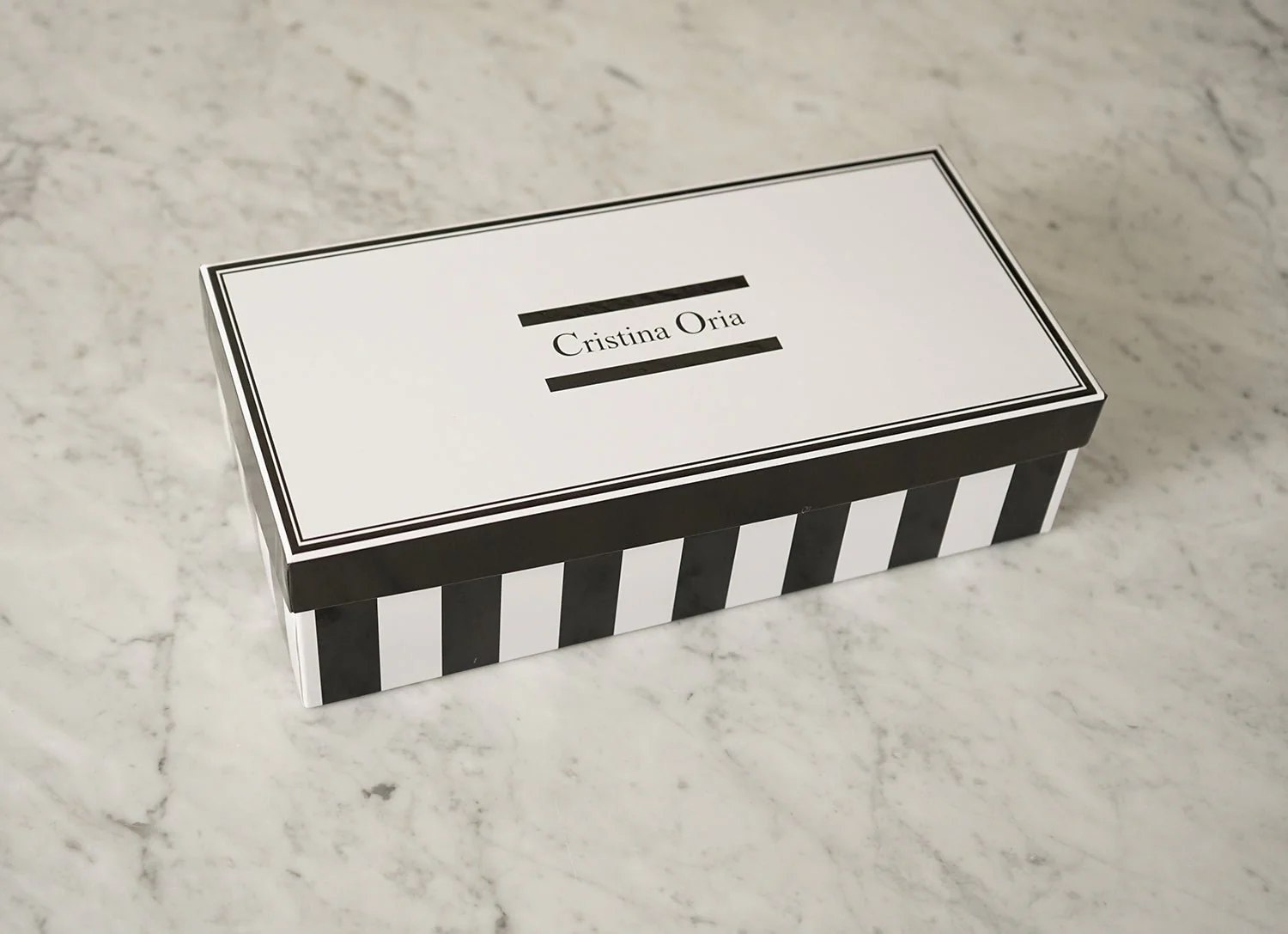 Sin duda, sorprenderás a tus invitados en la sobremesa con este juego de taza y plato de té, diseñado con nuestros emblemáticos colores “blanco y negro” y con un delicado filo dorado decorando, que le dará a tu mesa el toque elegante que estabas buscando.