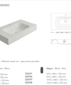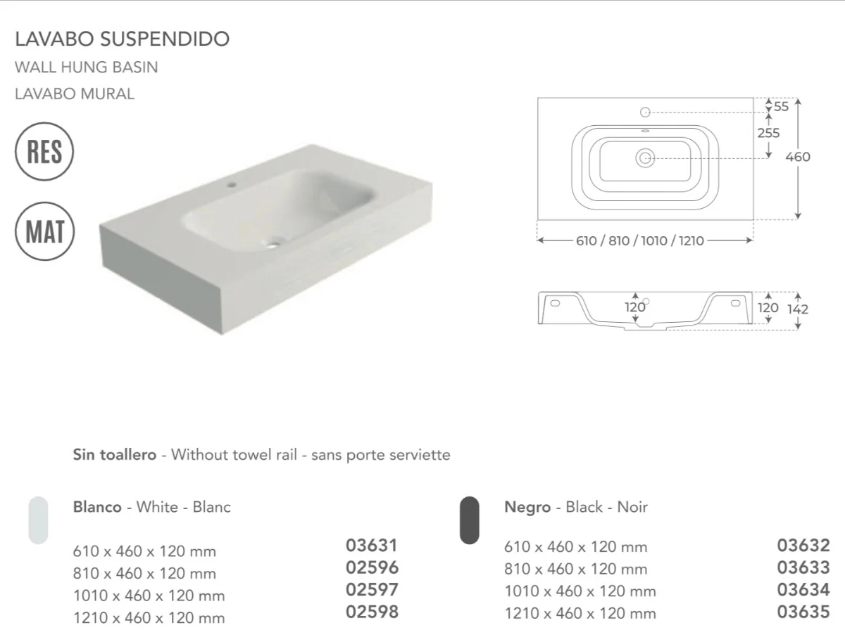 Lavabo Suspendido, de Resina, para instalar en pared, de medidas 101 X 46 X 12 cm.