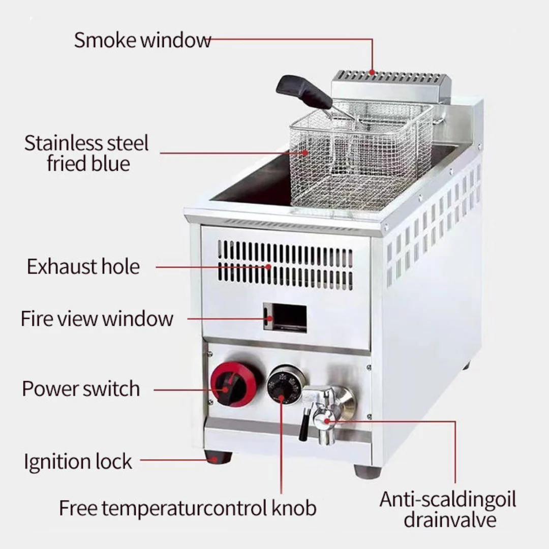 Freidora a Gas de Acero Inoxidable 1 Tina con 2 Cesta 12 Litros