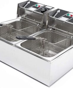 Freidora Eléctrica 220V Doble de 10 Litros + 10 Litros con Drenaje HEF-102V