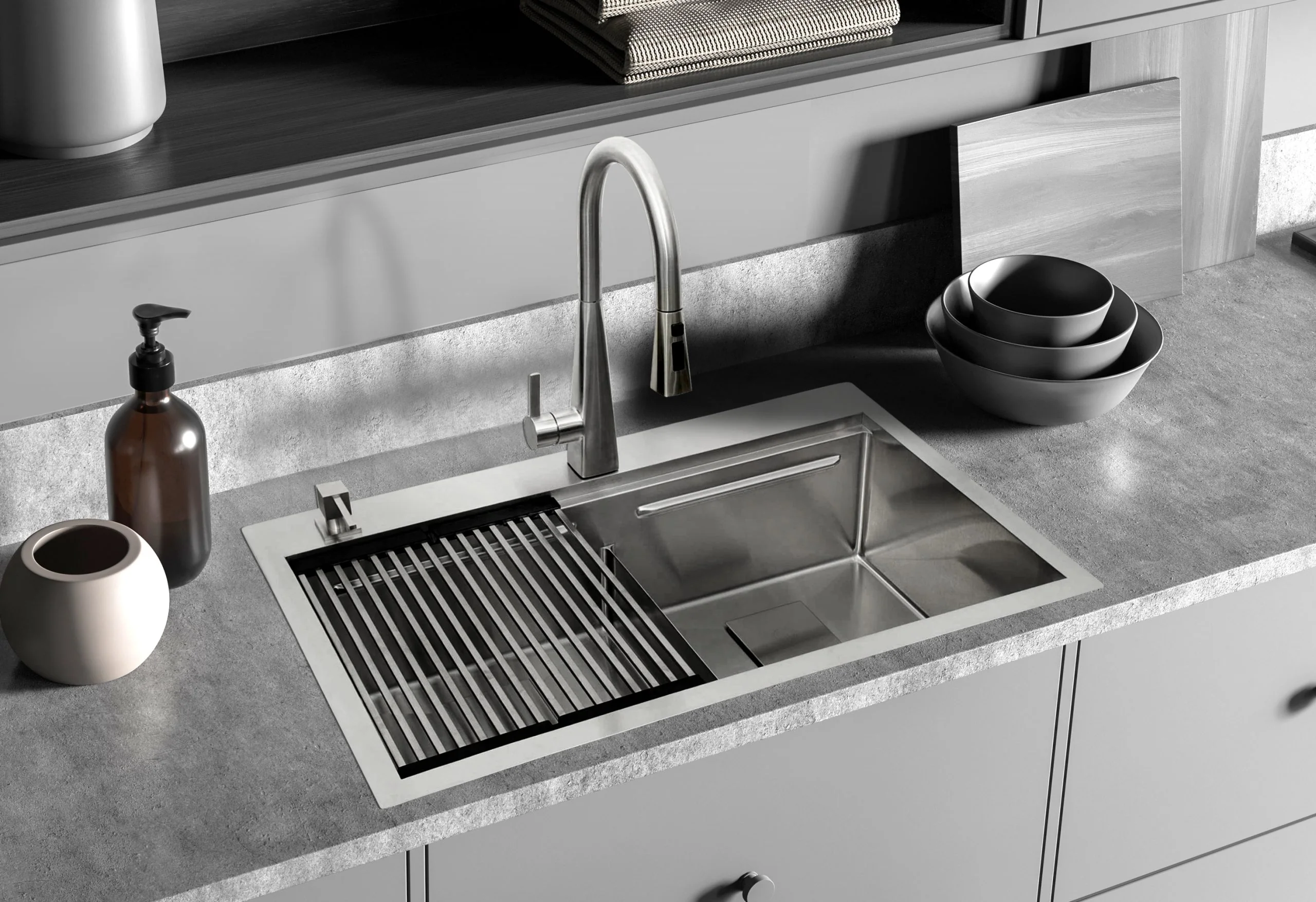 | Material y Acabado | Fregadero compuesto por acero inoxidable 304 de alta calidad, fácil limpieza y mantenimiento. |