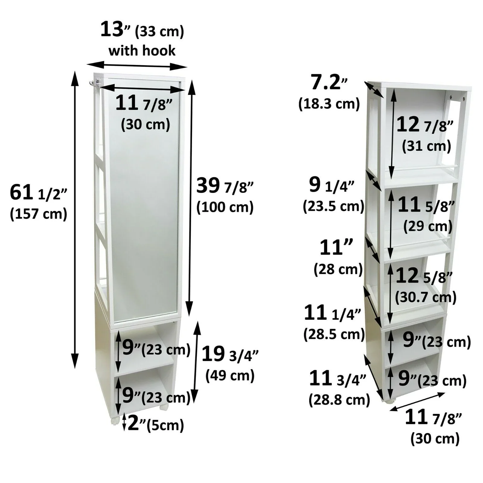 *Compuesta por una parte alta giratoria con espejo por un lado y 3 nichos por el otro + una parte baja con 2 nichos abiertos. Requiere montaje.