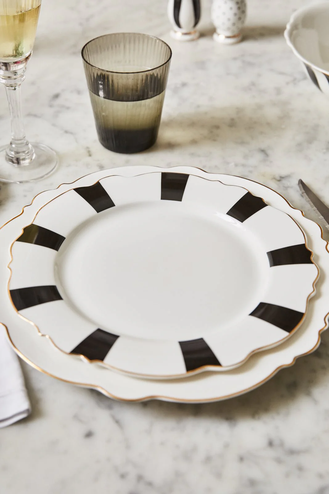 Diseñado con nuestros emblemáticos colores “blanco y negro” y con un delicado filo dorado decorando, que le dará a tu mesa el toque elegante que estabas buscando.