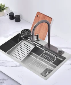 ANTIBACTERIAS / INCLUYE VÁLVULA CUADRADA, SIFÓN Y SELLANTE, PLANTILLAS DE ENCASTRE / BARRA DE ANCLAJE BAJO ENCIMERA.