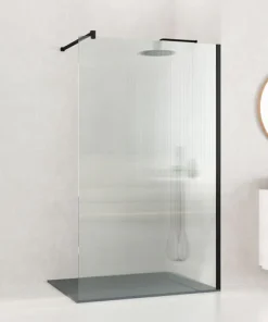 Mampara de ducha de 200cm de altura y vidrio templado 8mm con tratamiento antical.