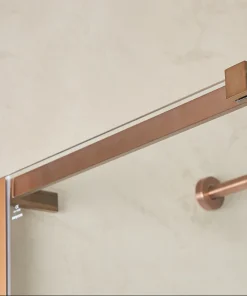 Mampara de ducha de 200cm de altura y vidrio templado 8mm con tratamiento antical, color COBRE cepillado.