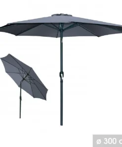 Esta sombrilla parasol tiene un diámetro de 300 cm y es inclinable para adaptarse a la posición del sol. Está hecha con una estructura de aluminio y acero de 48 mm de diámetro, para mayor resistencia y durabilidad. Además, cuenta con 8 varillas de acero de 12 x 18 mm, que proporcionan un soporte fuerte y estable. Es ideal para ser utilizado en terrazas, jardines y patios.