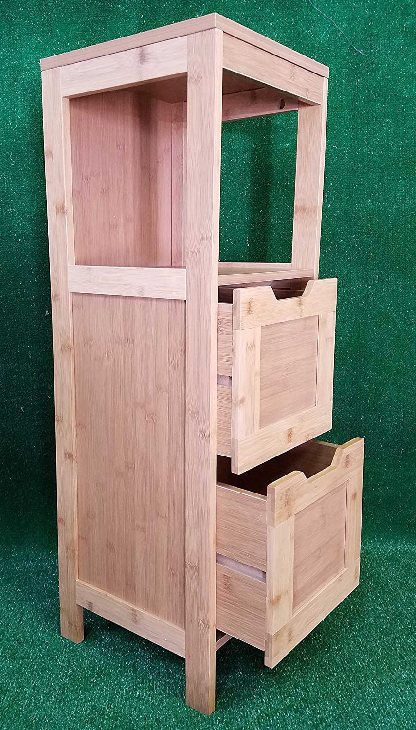 TENDANCE Mahe Mueble Columna de Baño Armario Cajonera Bambú 2 Cajones DM Plus 1 Estante
