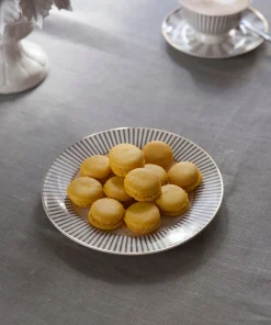 – 6 platos postre rayas blanco y gris CO