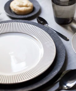 – 6 platos hondos rayas blanco y gris CO